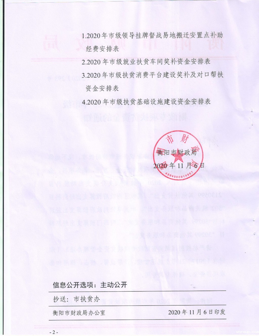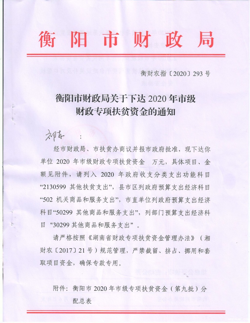 转发《衡阳市财政局关于下达2020年市级财政专项扶贫资金的通知》