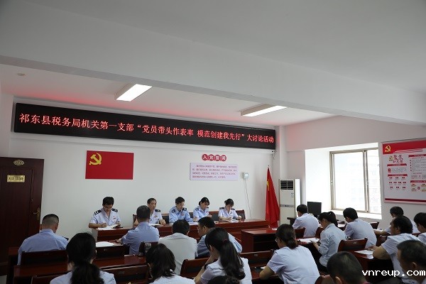 5月9日,中共国家税务总局雷竞技app下载官方版iso税务局机关第一支部开展“党员带头作表率 模范创建我先行”大讨论,支部全体党员参加讨论。