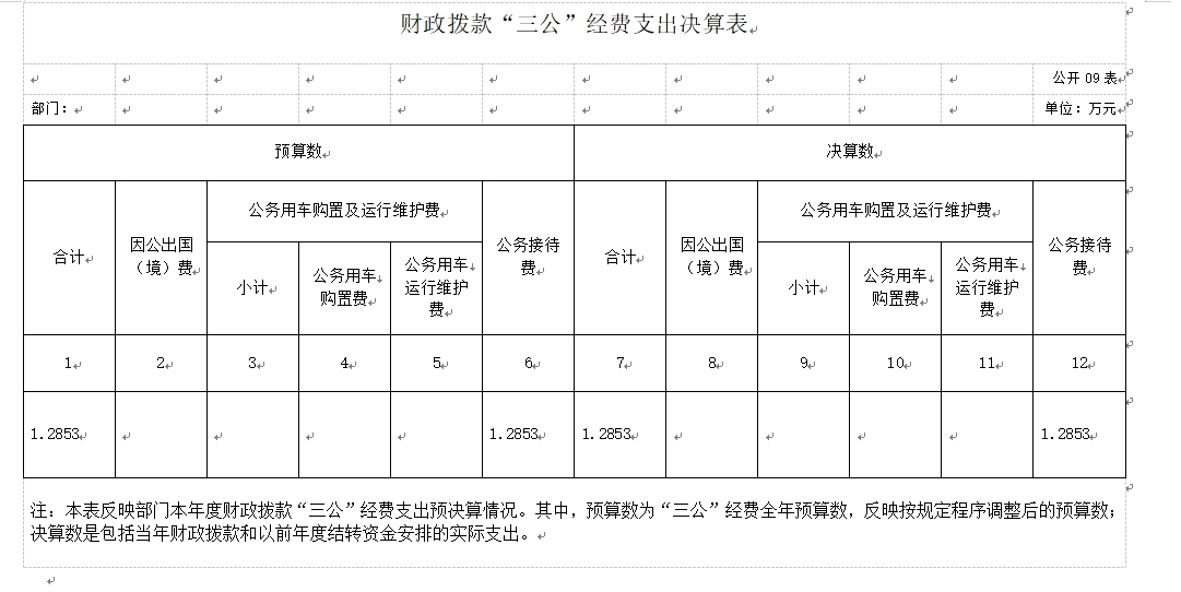 因公出国(境)费支出预算为0万元,支出决算为0万元,完成预算的0%。公务接待费支出预算为1.2853万元,支出决算为1.2853万元,完成预算的100%.与上年相比增加0.2853万元。