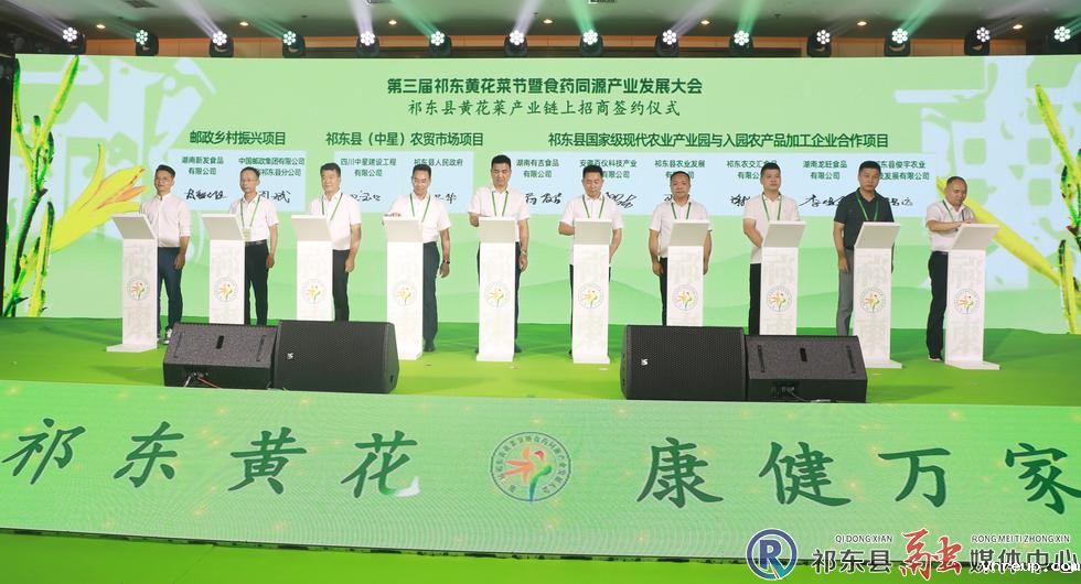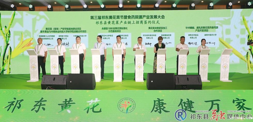 会上,中国载人航天工程原副总设计师、人因工程全国重点实验室主任、国际宇航科学院院士陈善广,世界卫生组织传统医学顾问、国家食药同源产业科技创新联盟副理事长、宁波大学新药技术研究院教授刘新民,省市场监督管理局局长钱俊君,市委书记刘越高,市人大常委会党组书记、主任刘正兴,市政协党组书记、主席刘丽华,县委书记雷华等领导嘉宾共同为“第三届祁东黄花菜节暨食药同源产业发展大会”启幕。县长彭丽堂主持节会启幕仪式。我县是“中国黄花菜之乡”,种植黄花菜已有600多年的历史,祁东黄花菜在全国市场占有率多年来一直保持在70%以上。全县积极利用产业厚重优势,连续多年举办“祁东黄花菜节”,推进一二三产融合发展。