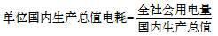 单位国内生产总值电耗 指一定时期内,一个国家或地区每生产一个单位的国内生产总值所消费的电力。计算公式为: