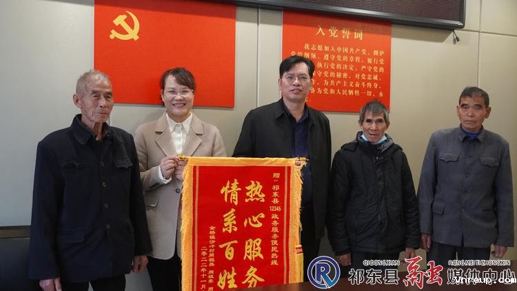 为了表达感谢,周祖豪与他弟弟周祖英、周祖卫带着锦旗来到县行政审批服务局12345政务服务热线大厅,他们赞扬12345话务员服务热情,办事效率高。