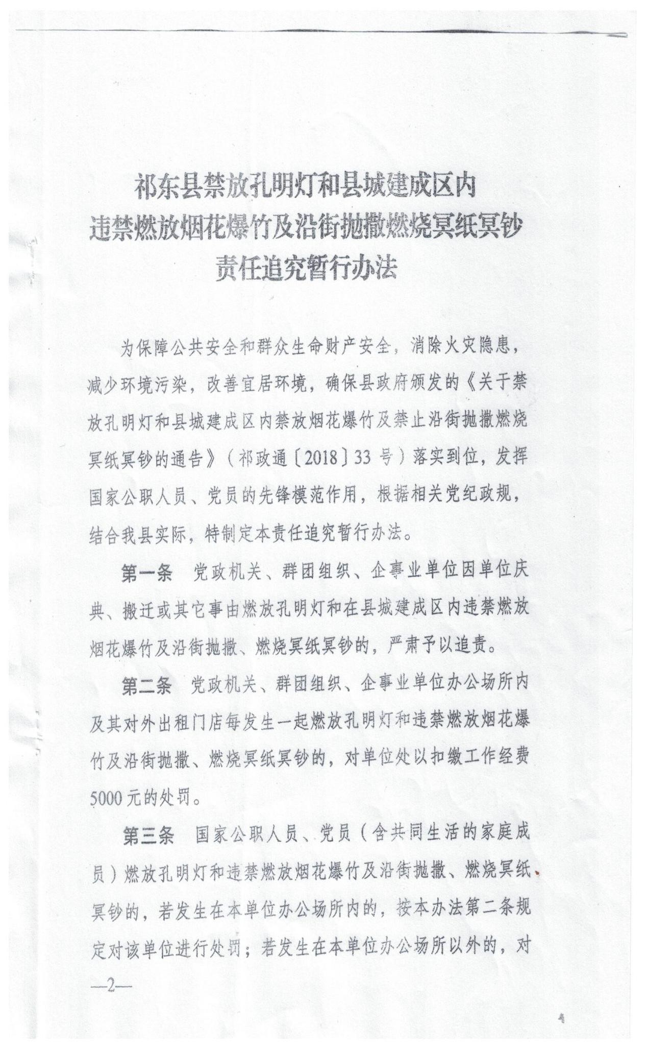 雷竞技app下载官方版iso禁放孔明灯和县城建成区内违禁燃放烟花爆竹及沿街抛撒燃烧冥纸冥钞责任追究暂行办法