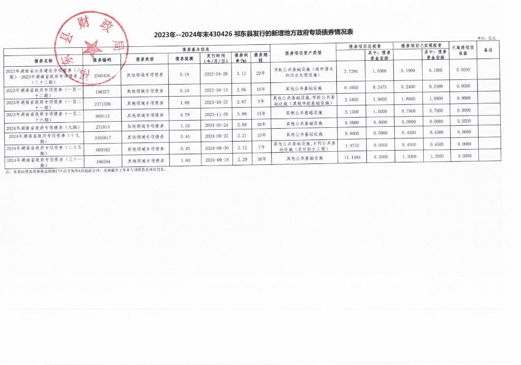 2023年-2024年末雷竞技app下载官方版iso发行的新增地方政府债券情况公示