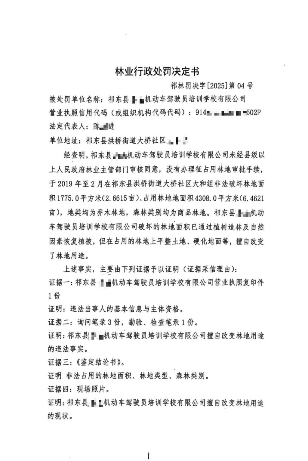 林业行政处罚决定书(祁林罚决字〔2025〕4号)