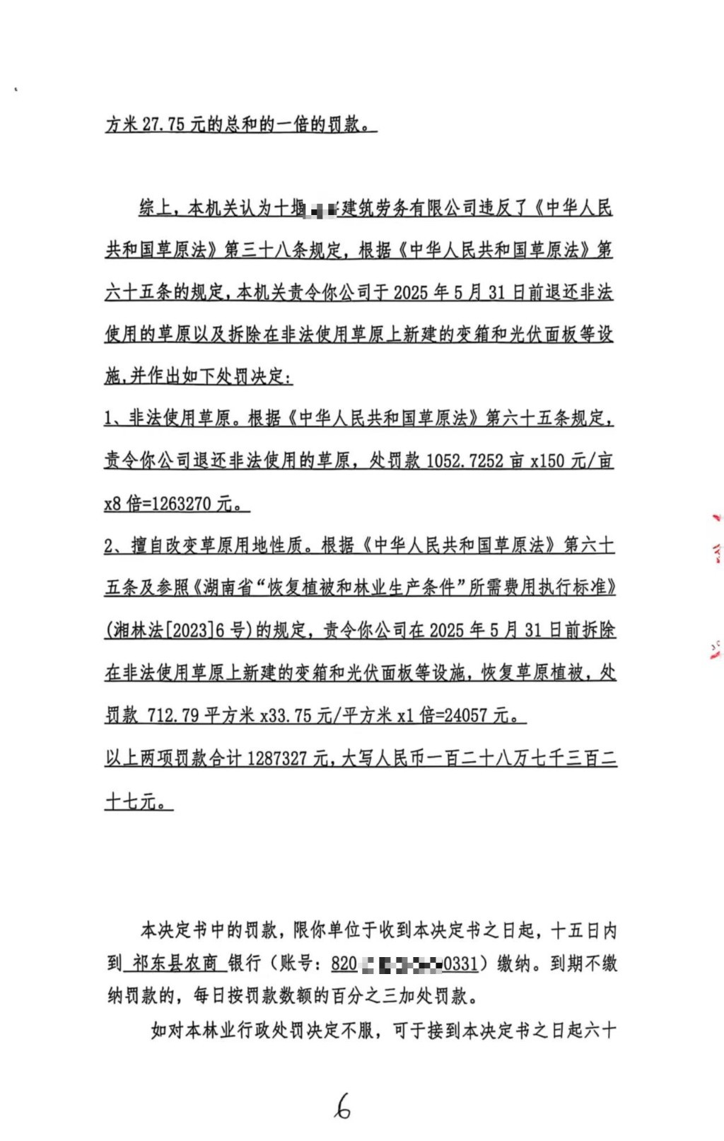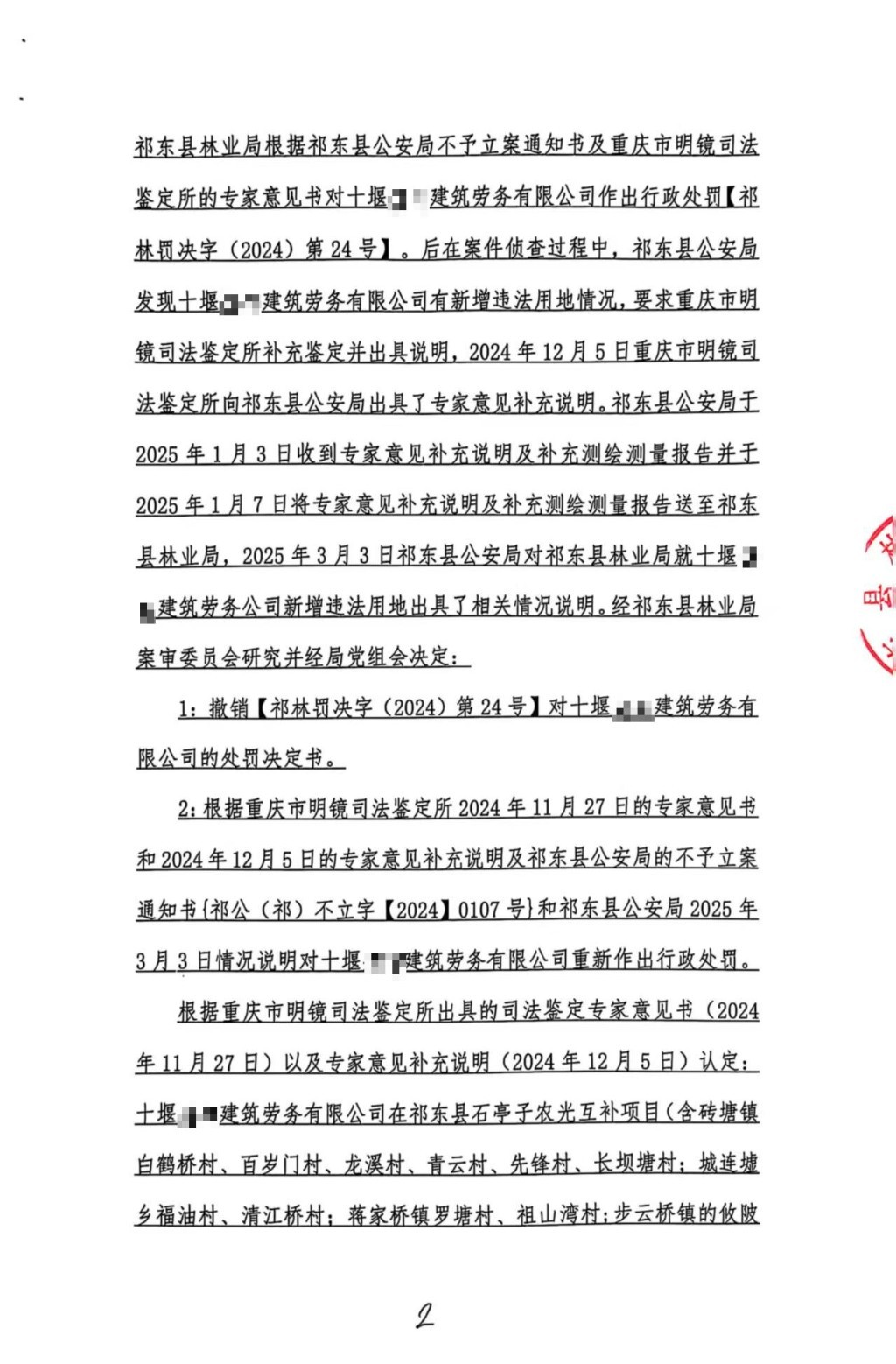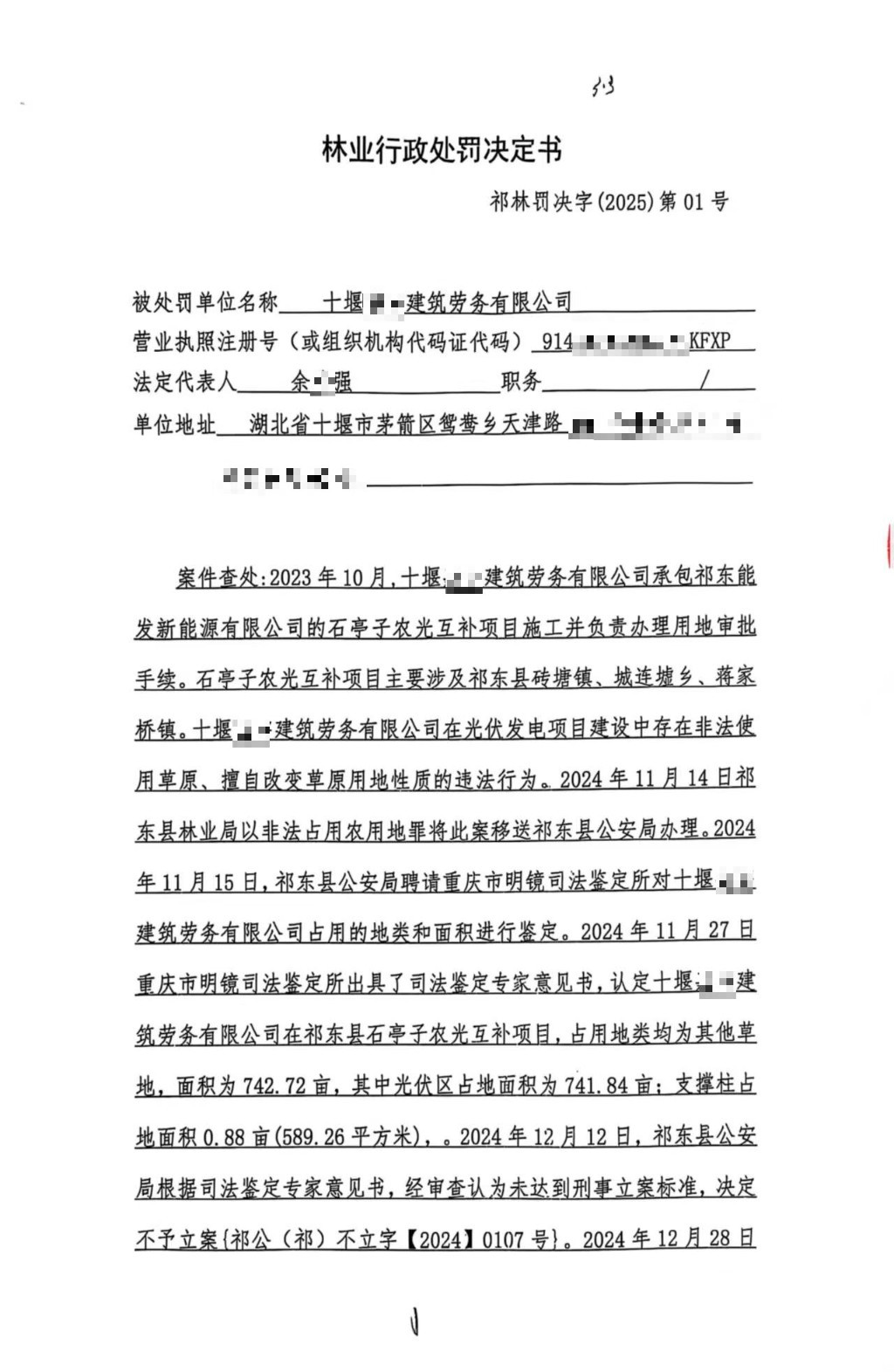 林业行政处罚决定书(祁林罚决字〔2025〕1号)