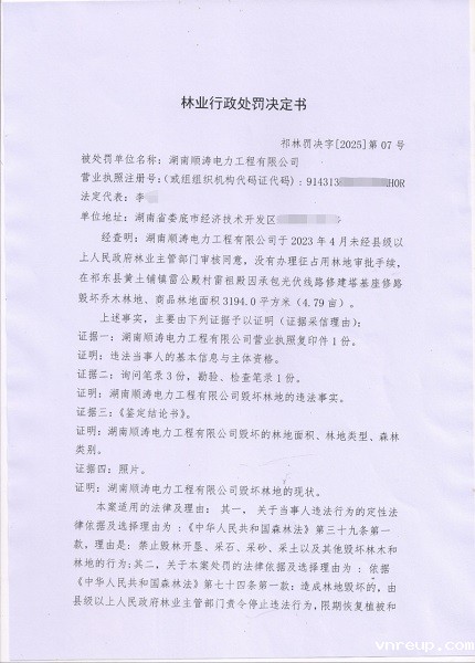 林业行政处罚决定书(祁林罚决字[2025]第07号)
