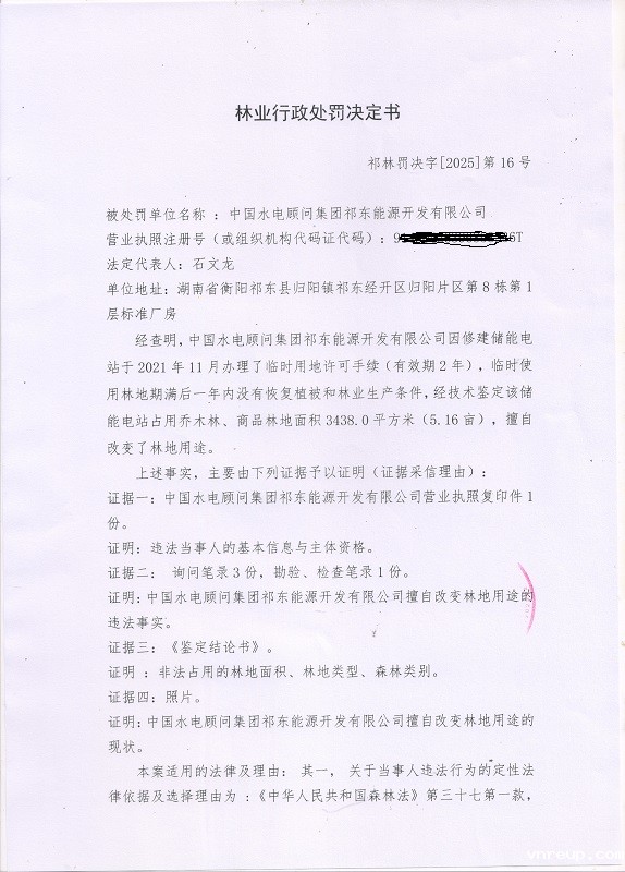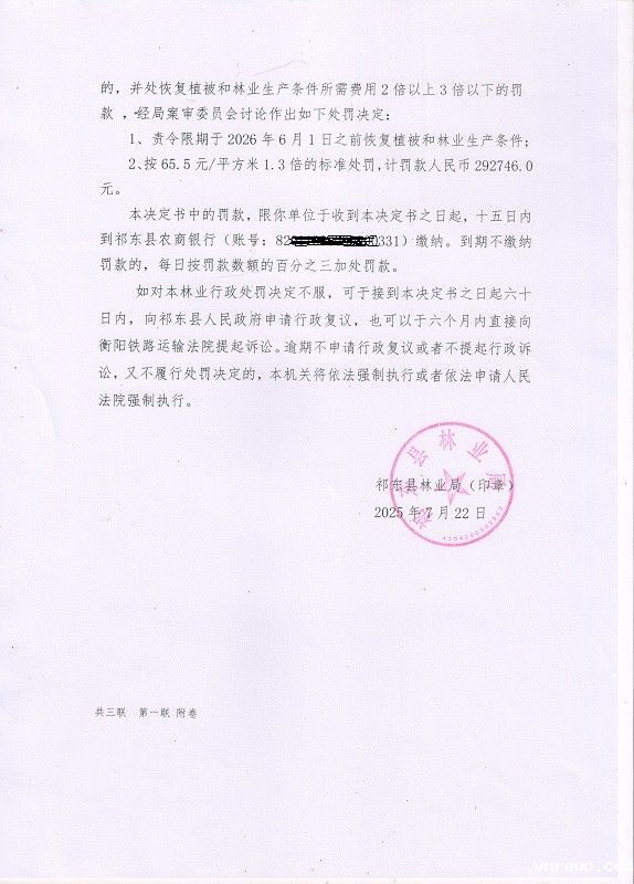 林业行政处罚决定书(祁林罚决字【2025】第16号)公示