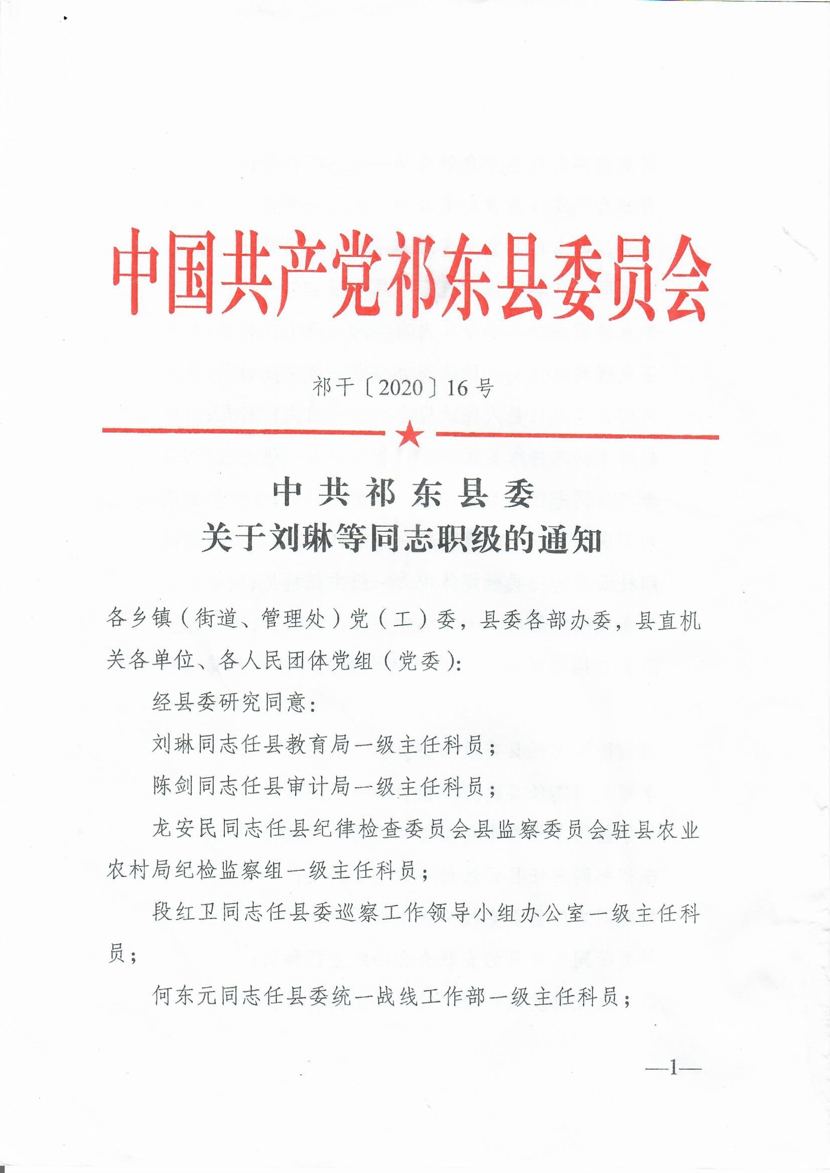 中共雷竞技app下载官方版iso委关于刘琳等同志职级的通知