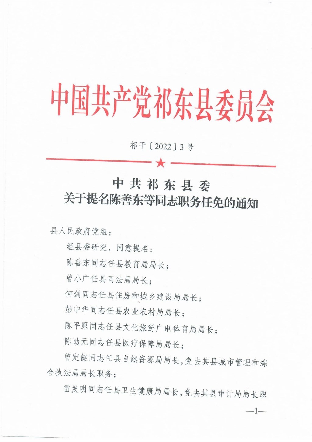中共雷竞技app下载官方版iso委关于提名陈善东等同志职务任免的通知