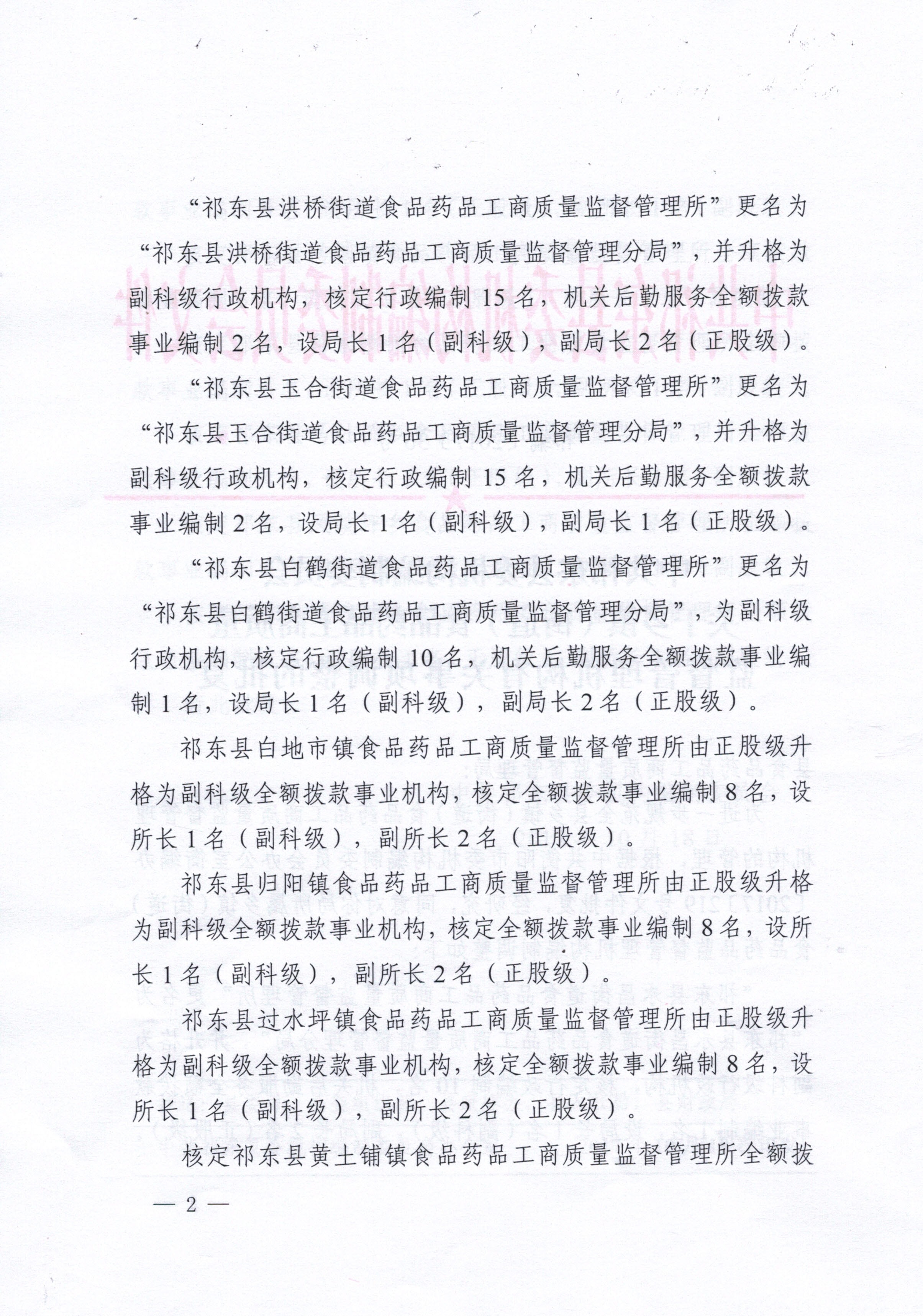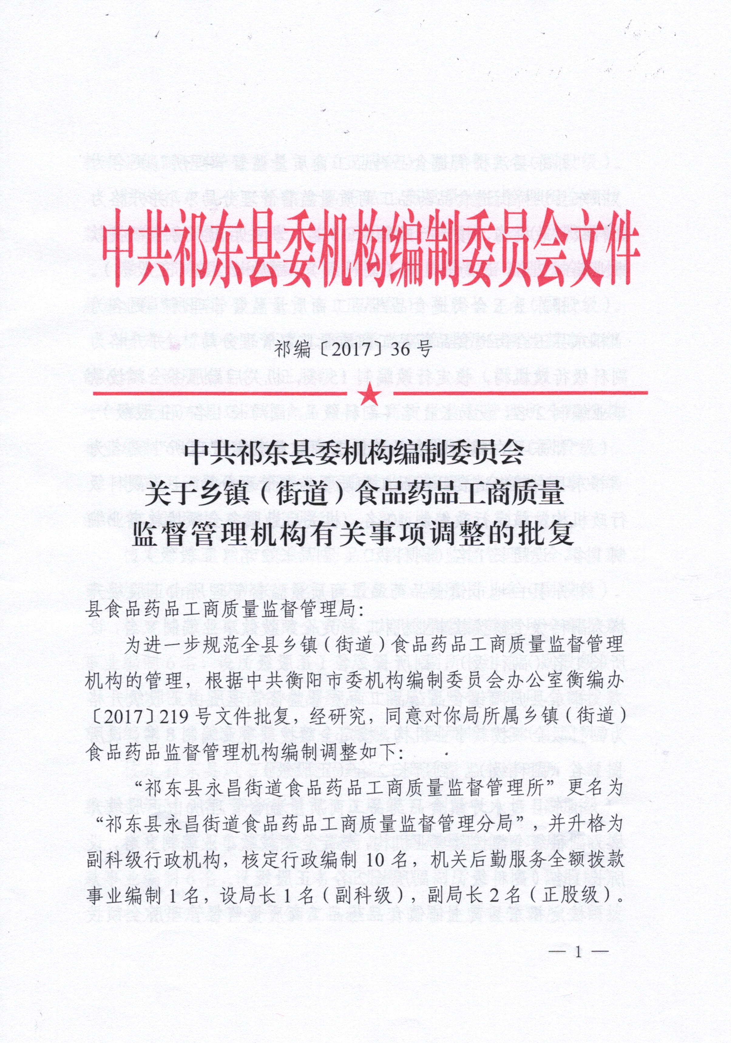 关于乡镇街道食品药品工商质量监督管理机构有关事项调整的批复