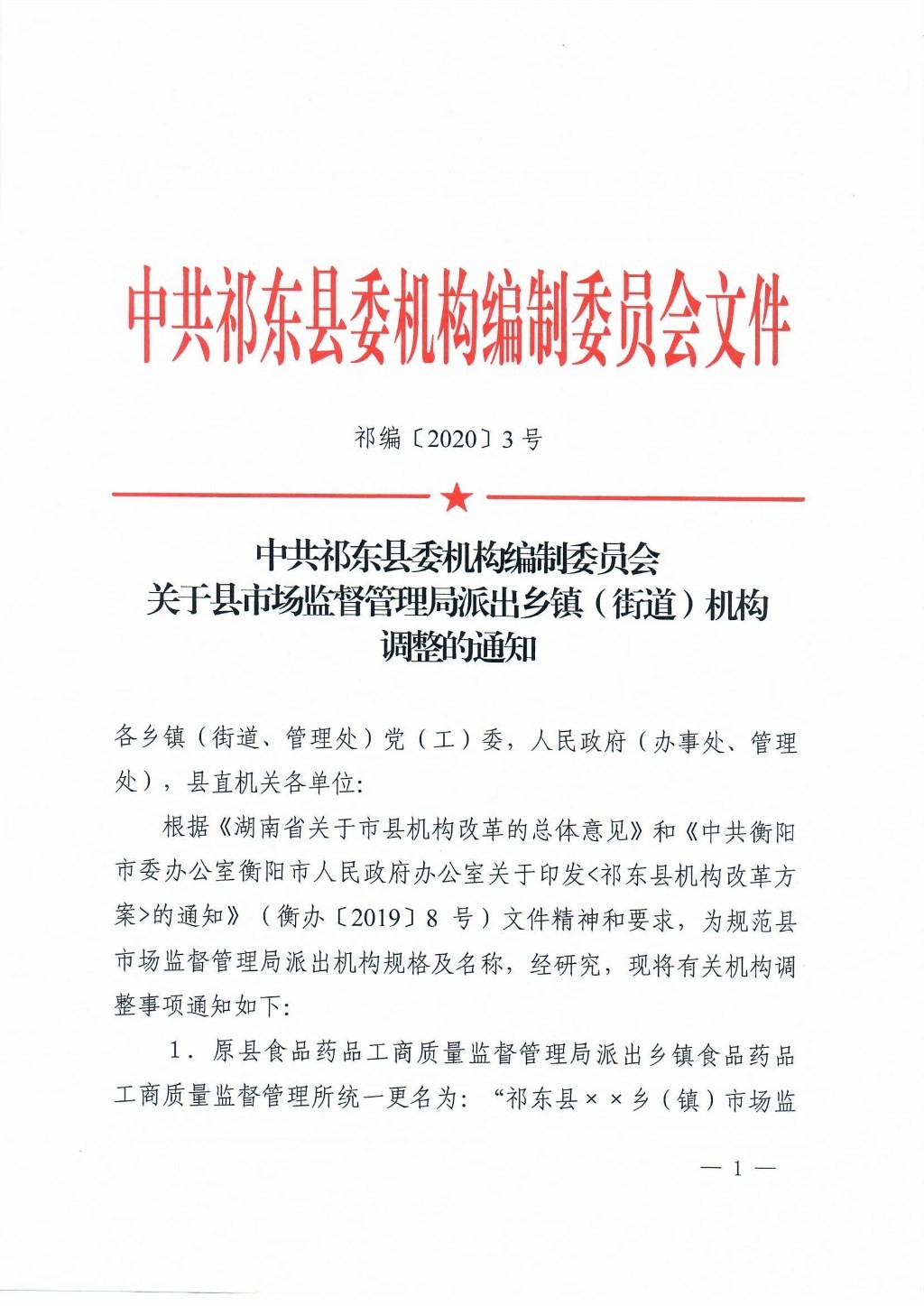 中共雷竞技app下载官方版iso委机构编制委员会关于县市场监督管理局派出乡镇(街道)机构调整的通知