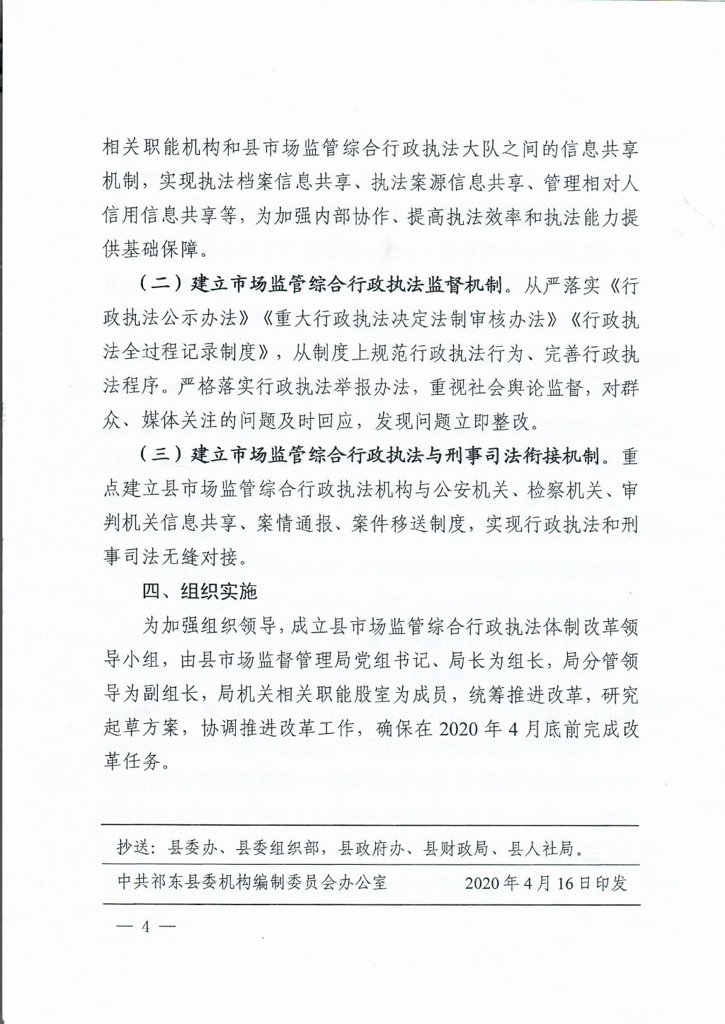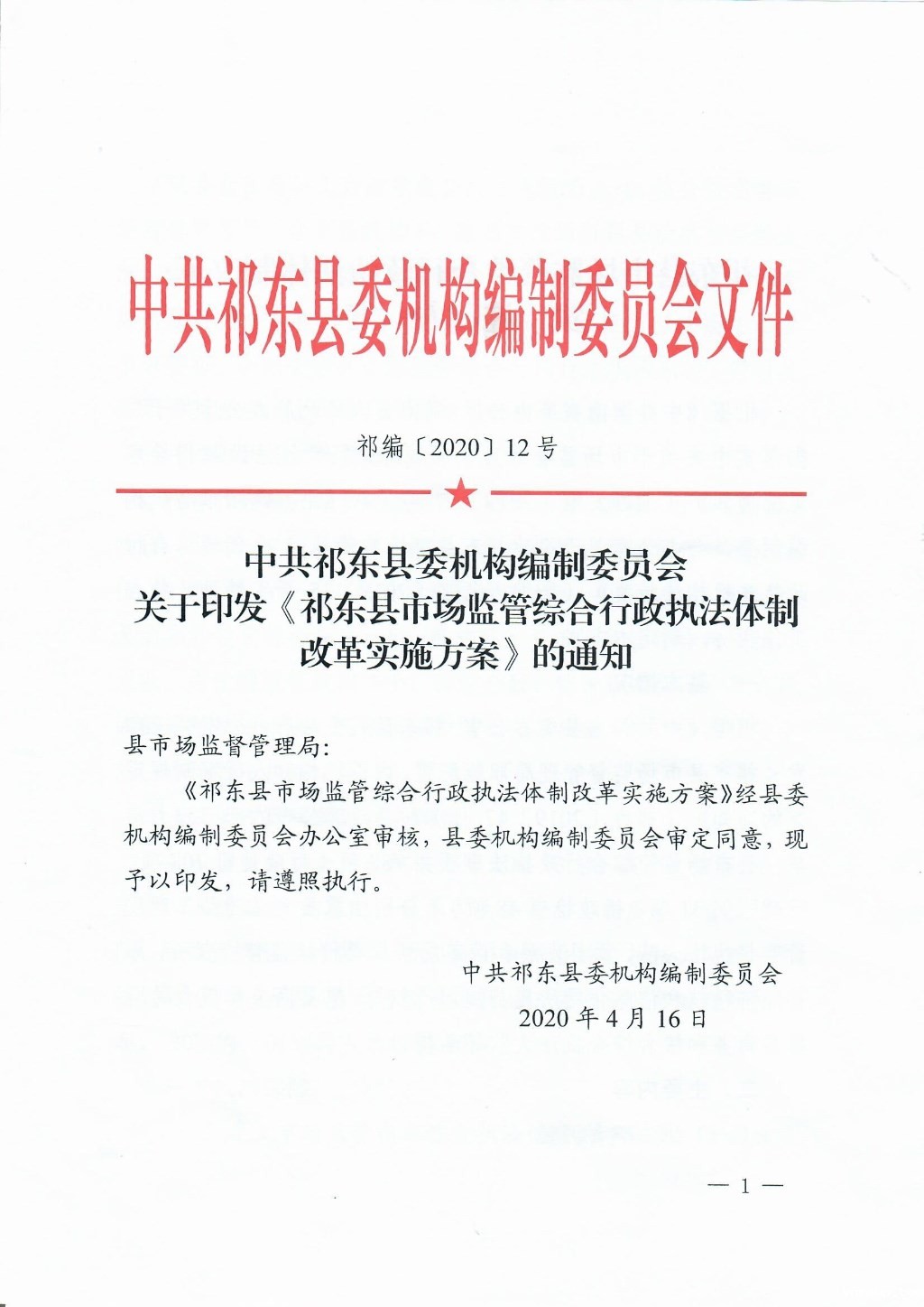 中共雷竞技app下载官方版iso委机构编制委员会关于印发《雷竞技app下载官方版iso市场监督管理综合行政执法体制改革实施方案》的通知