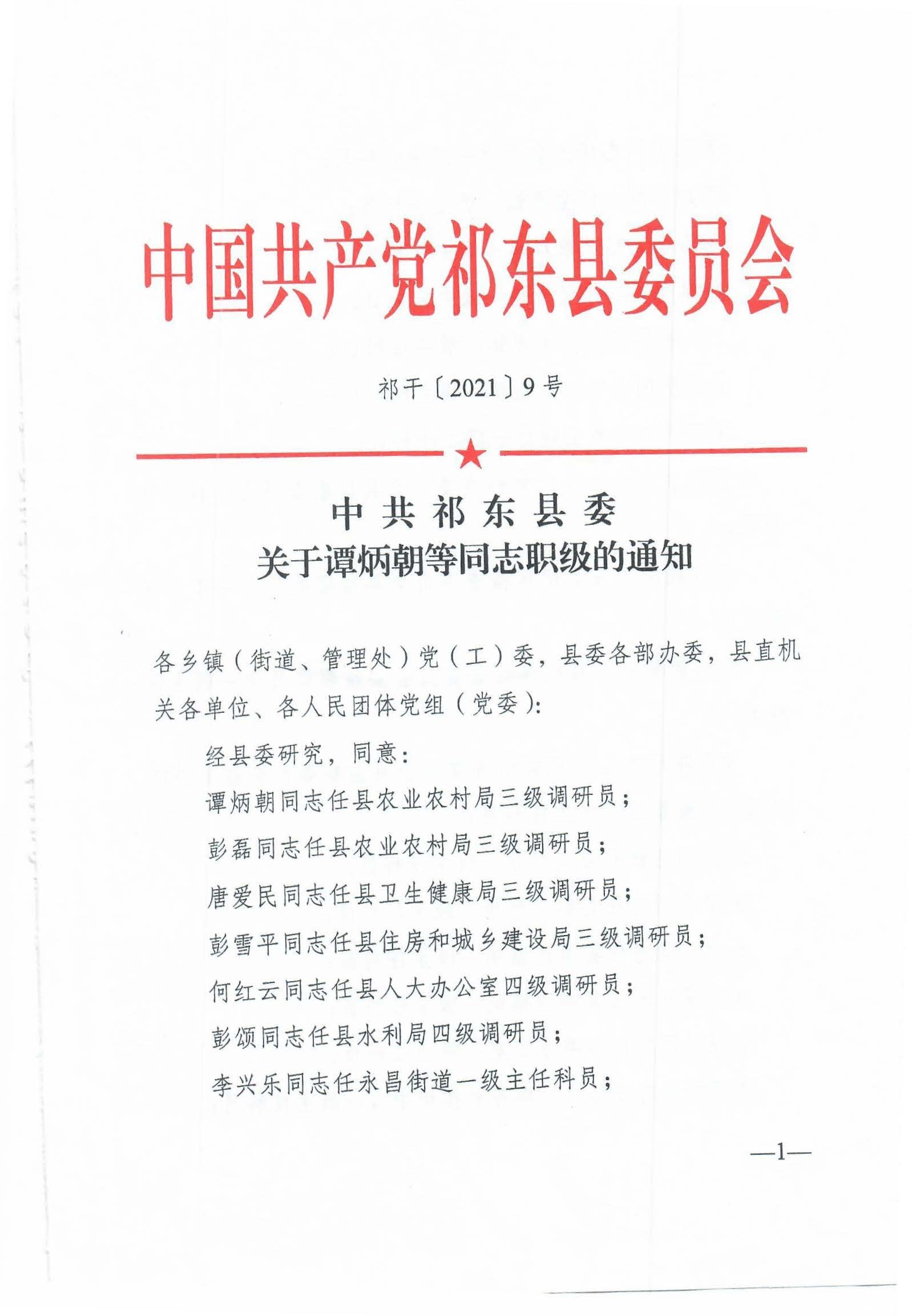 中共雷竞技app下载官方版iso委关于谭炳朝等同志职级的通知