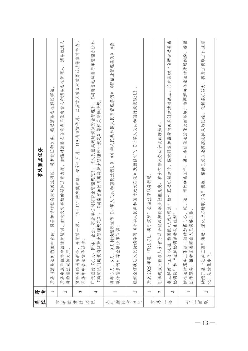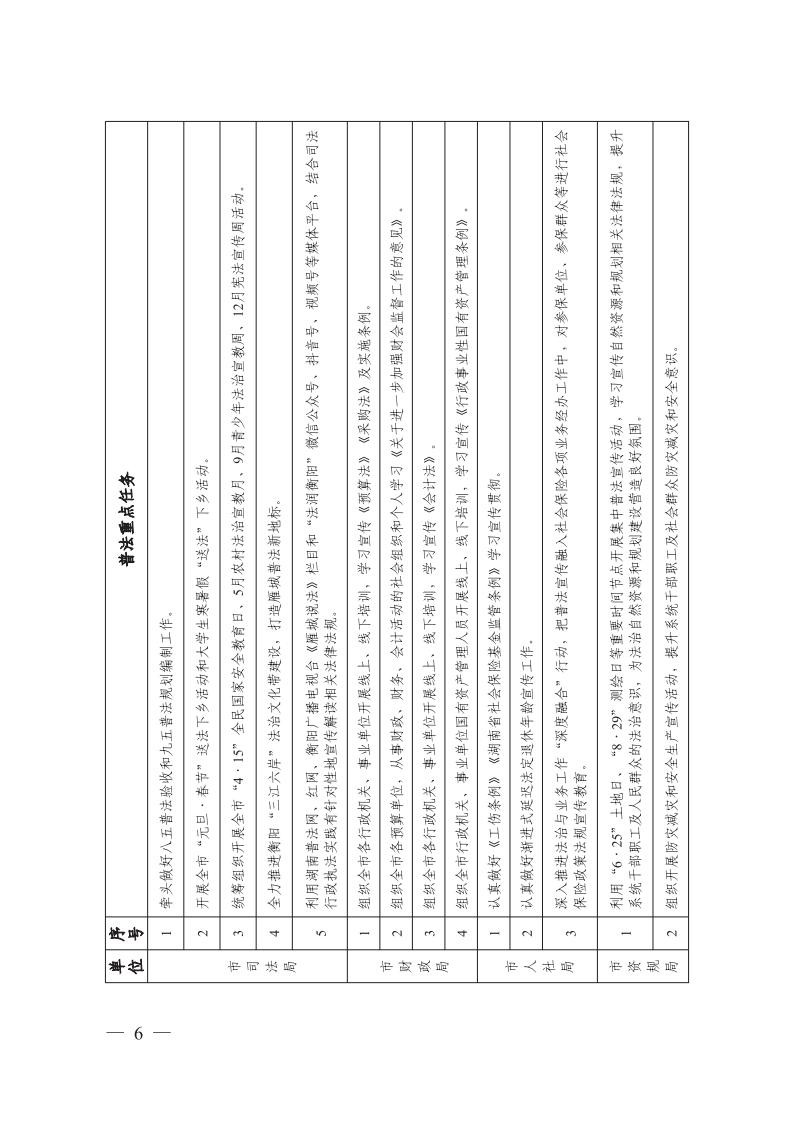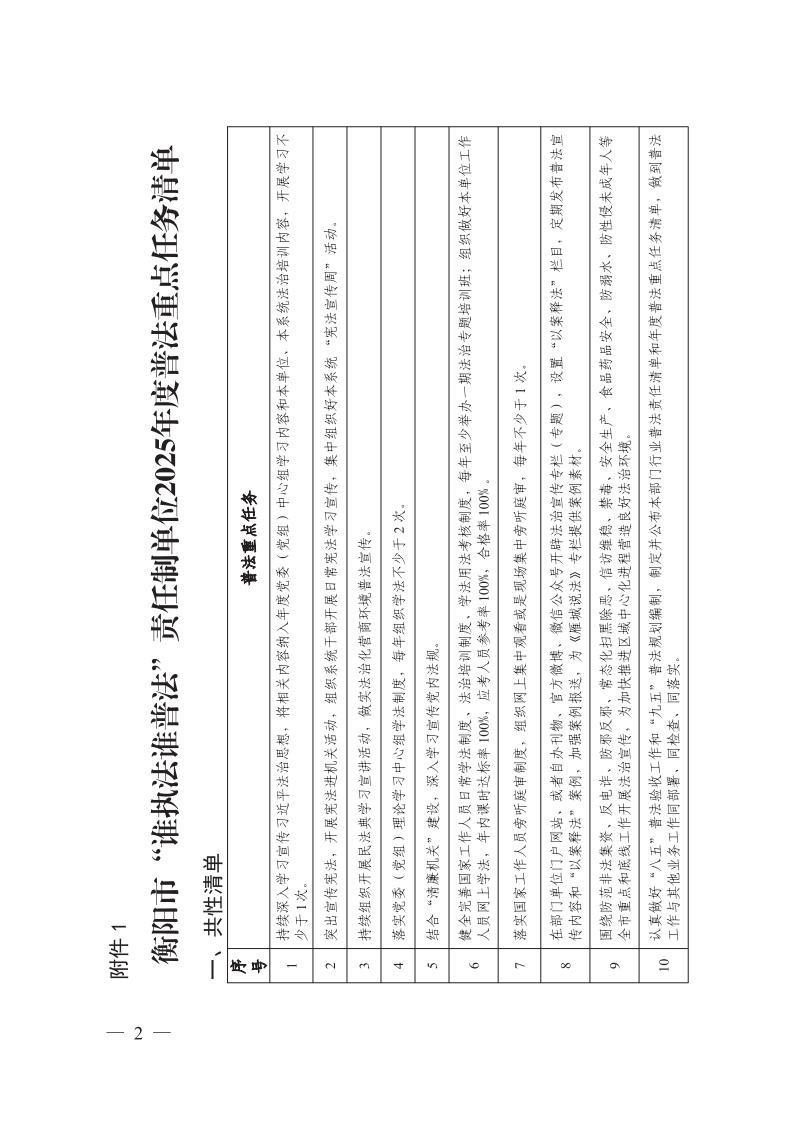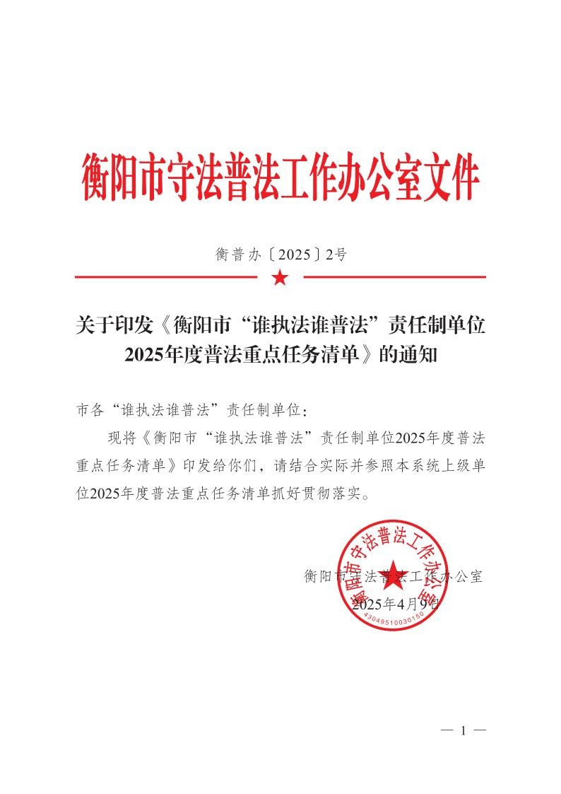 关于印发《衡阳市“谁执法谁普法”责任制单位2025年度普法重点任务清单》的通知