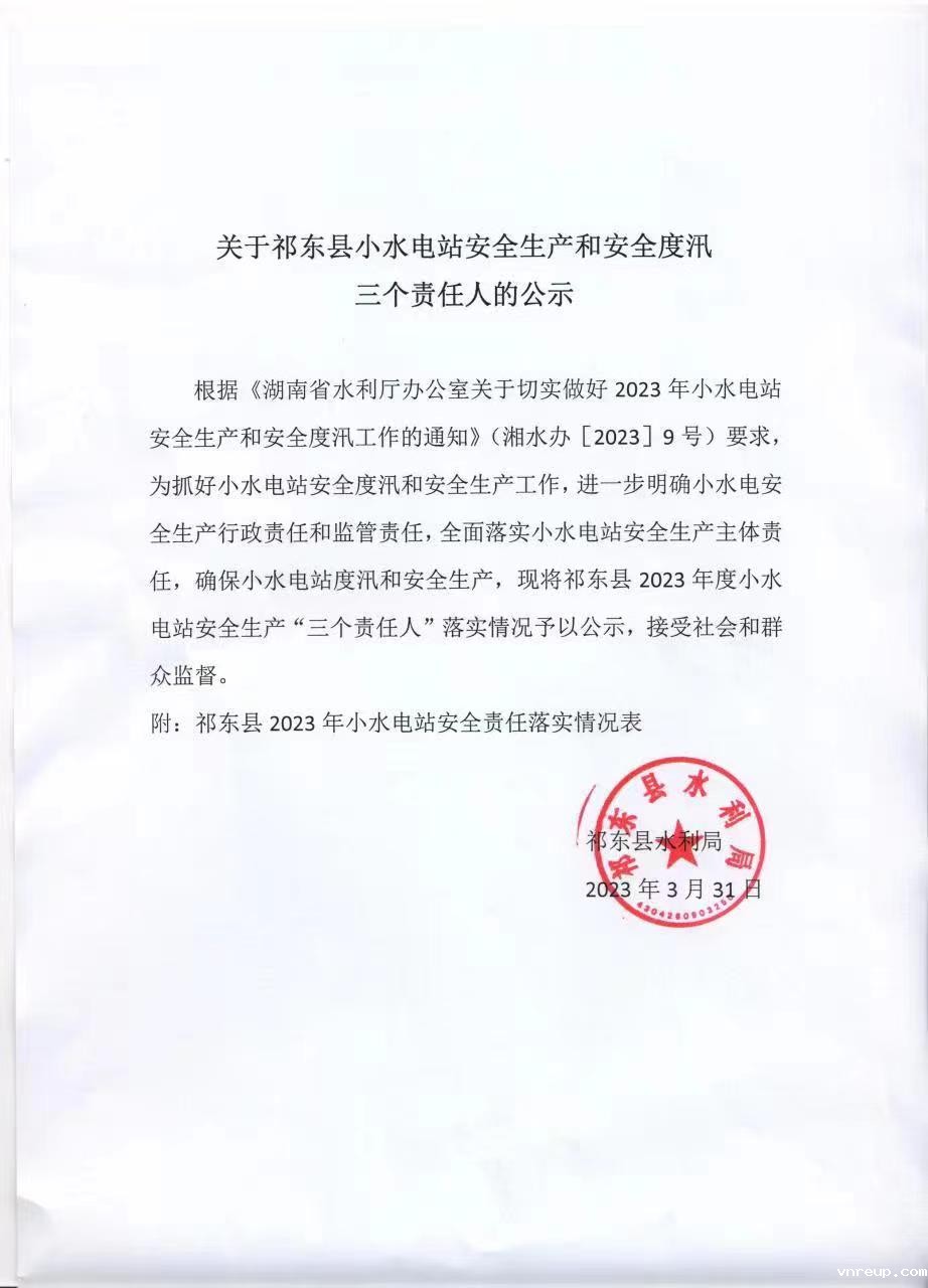 关于雷竞技app下载官方版iso小水电站安全生产和安全度汛三个责任人的公示