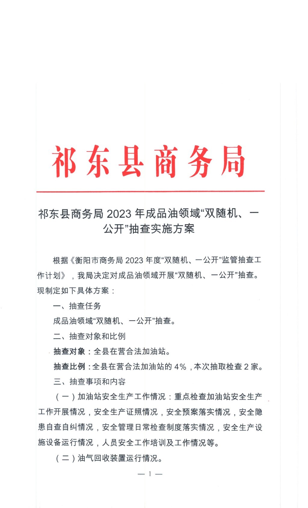 雷竞技app下载官方版iso商务局2023年成品油领域“双随机、一公开”抽查实施方案