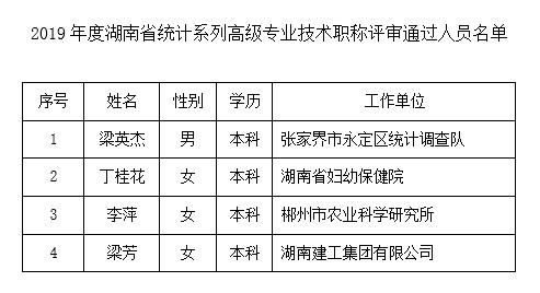 附件:2019年度湖南省统计系列高级专业技术职称评审通过人员名单