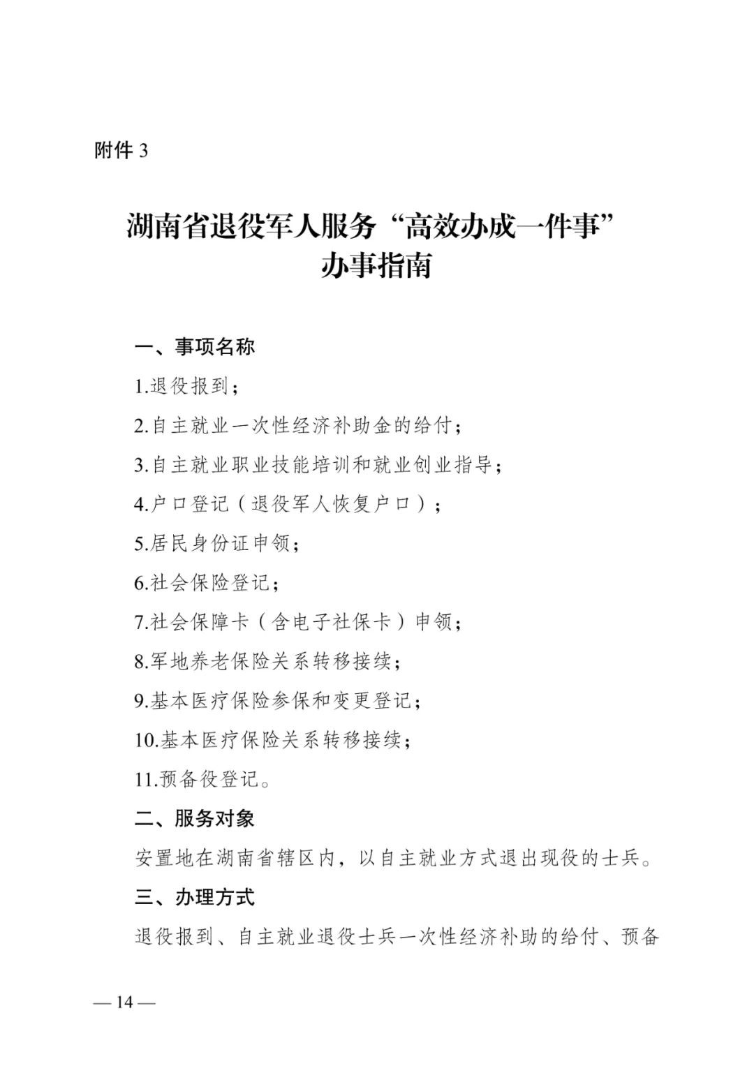湖南省推进退役军人服务"高效办成一件事"实施方案