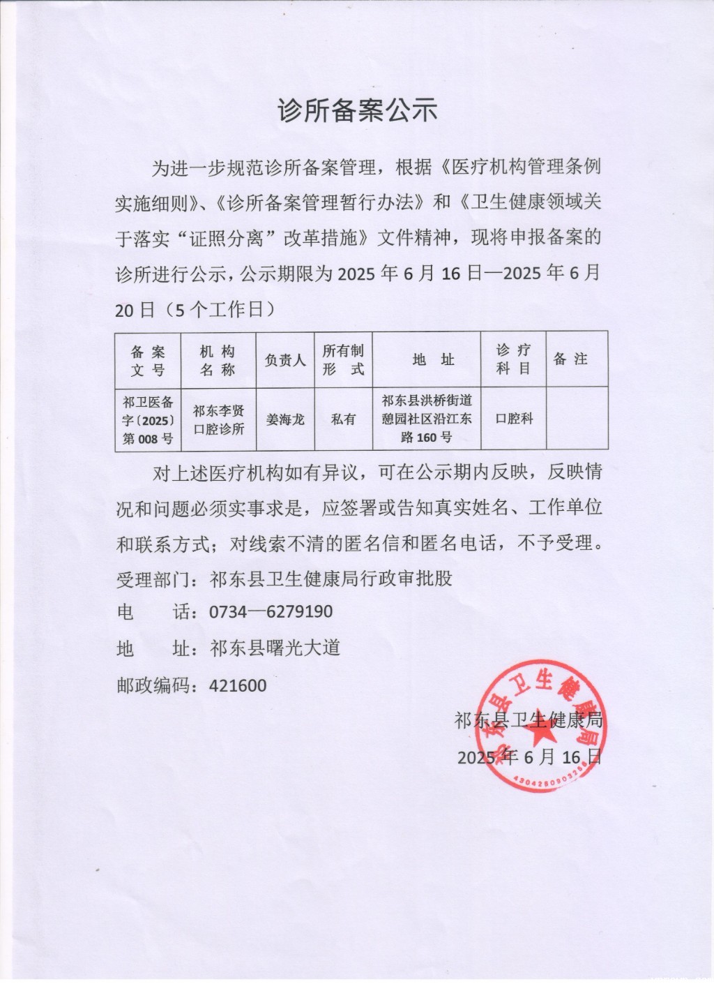 诊所备案公示