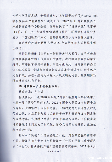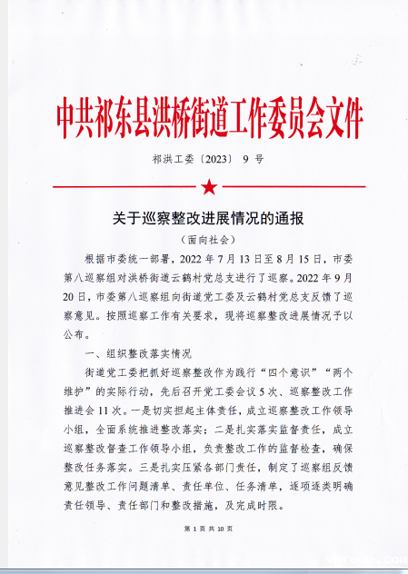 中共雷竞技app下载官方版iso洪桥街道工作委员会关于市委第八巡察组巡察整改情况的报告(社会公开稿)