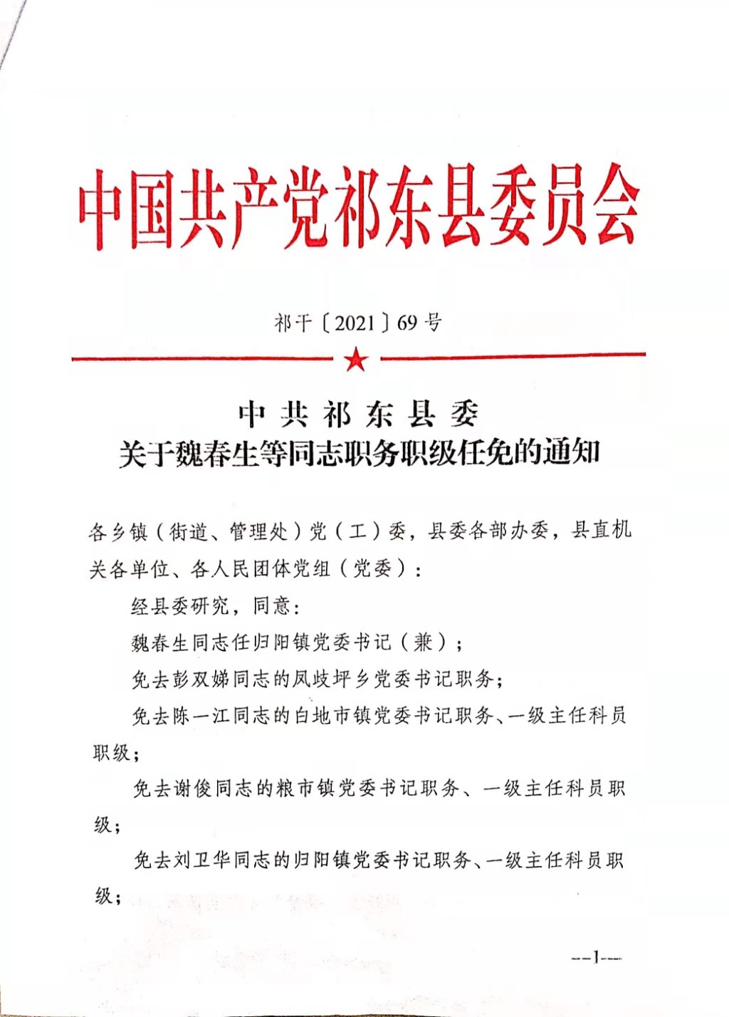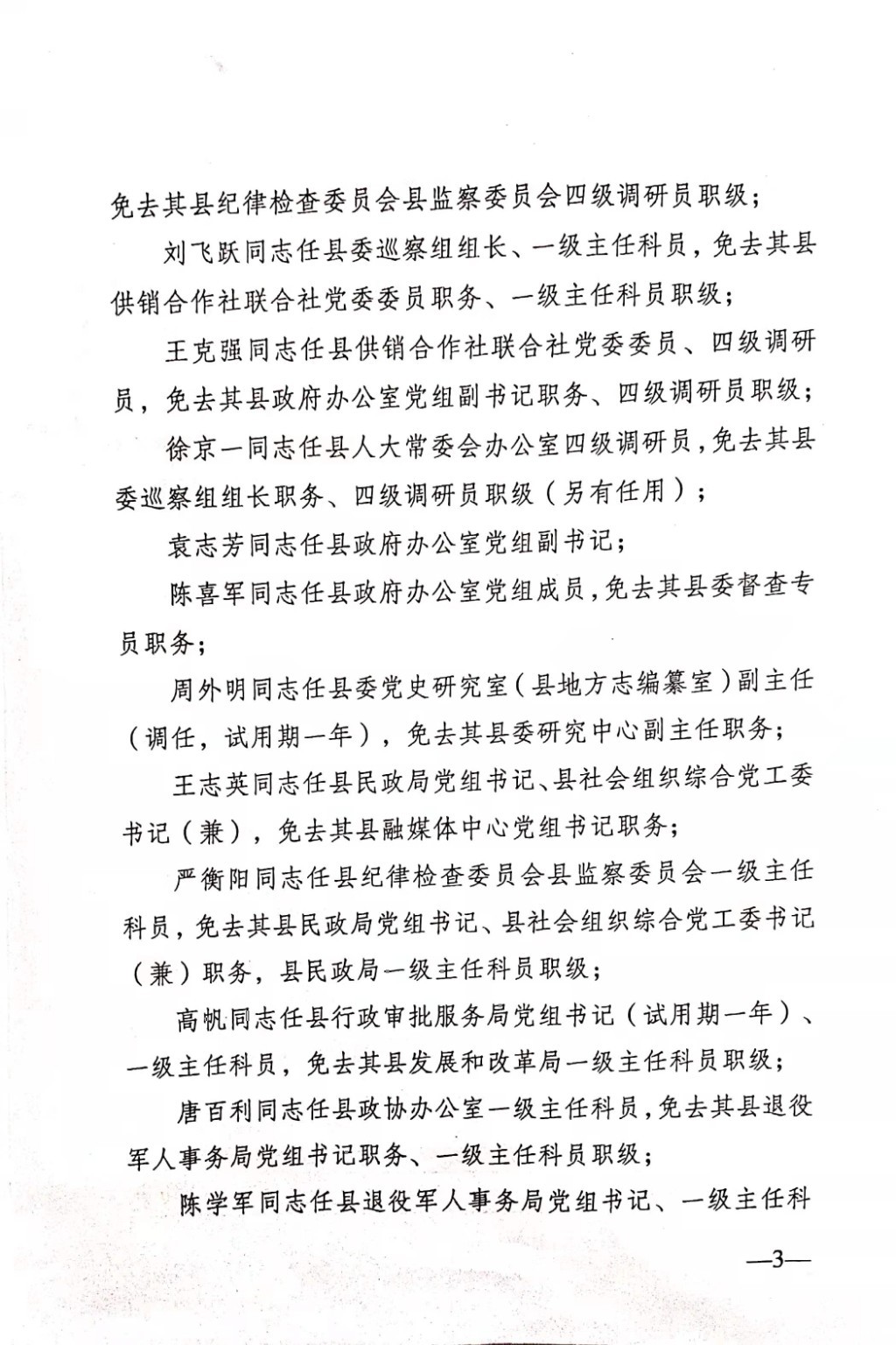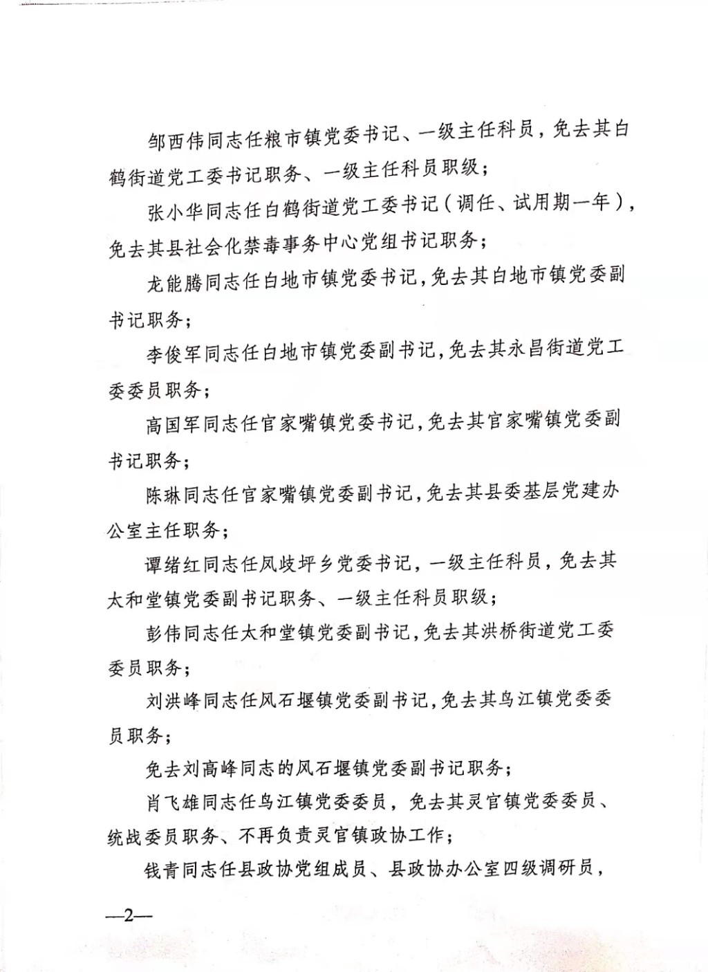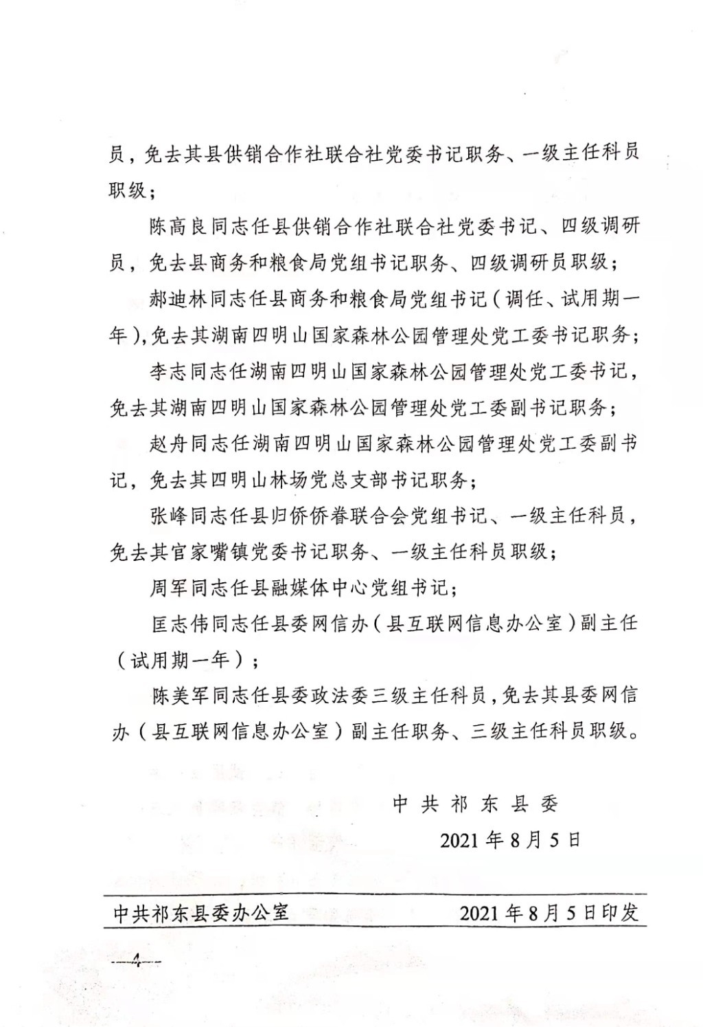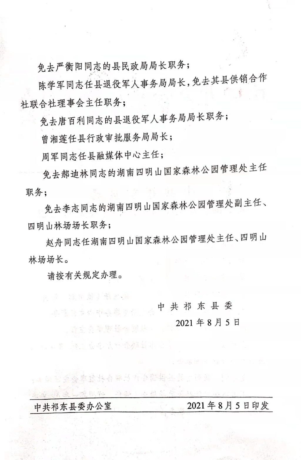 李志同志任湖南四明山国家森林公园管理处党工委书记,免去其湖南四明山国家森林公园管理处党工委副书记、管理处副主任、四明山林场场长职务。