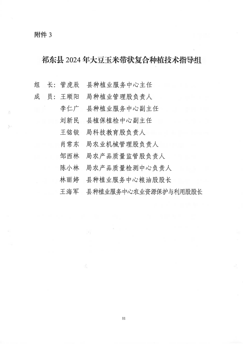 (三)强化指导服务。县农业农村局成立由县种植业服务 中心、县农业技术推广中心、县植保植检站中心、县种业事务 中心、局相关股室业务技术骨干组成的大豆玉米带状复合种植 县级技术指导组,配合省、市专家组开展技术指导。县农业农 村局将适时聘请省、市专家开展技术培训和临田指导,县级技 术指导组成员在大豆玉米带状复合种植关键农时环节深入田 间地头一线指导服务,及时解决农户生产中遇到的实际困难。 适时组织形式多样的现场观摩活动,切实提高大豆玉米带状复