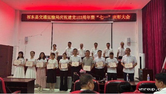 为庆祝中国共产党成立103周年,表彰先进,树立榜样,进一步增强交通系统基层党组织的凝聚力和战斗力,激发党员职工干事创业的责任感、使命感,为祁东交通运输事业高质量发展再立新功。7月3日,交通运输局召开庆祝建党103周年暨“七一”表彰大会,交通系统全体党员近100人参加会议。