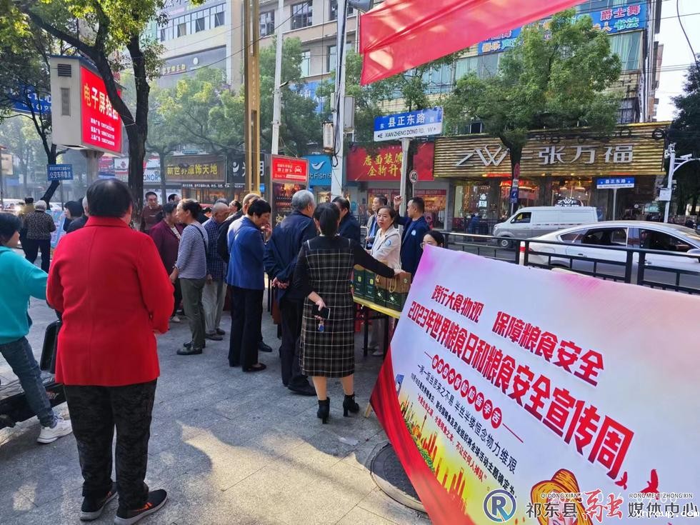 raybet雷子电竞10月18日讯(通讯员:唐欣)10月16日是第43个世界粮食日,当天上午,县发改局及县粮食和物资储备中心组织工作人员在憩园开展了主题为“践行大食物观 保障粮食安全” 的宣传活动。