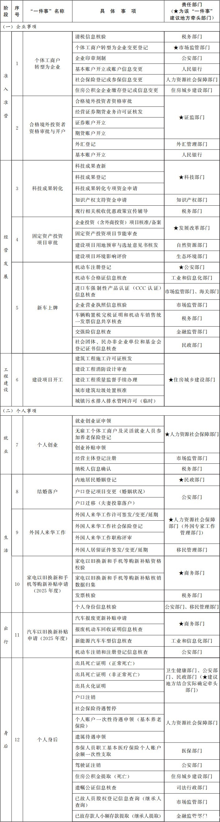 《“高效办成一件事”2025年度第一批重点事项清单》已经国务院同意,现印发给你们,请结合实际认真组织实施。