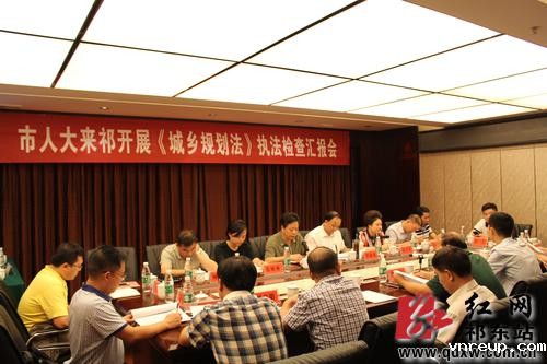 汇报会上,副县长官三元就我县贯彻实施《湖南省实施 <中华人民共和国城乡规划法> 办法》情况作汇报;县规划局、城市管理行政执法局、住建局等相关职能部门负责人分别就贯彻落实《城乡规划法》提出自己的意见和看法。 中华人民共和国城乡规划法>