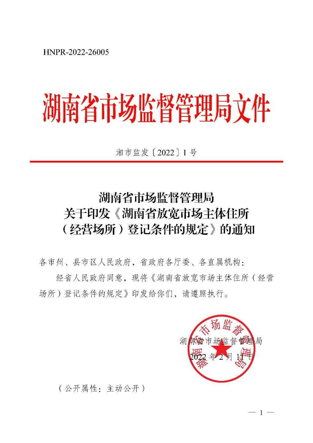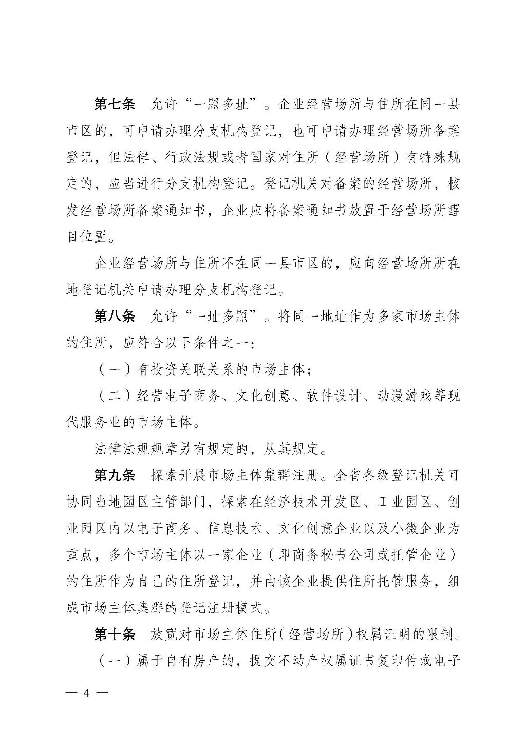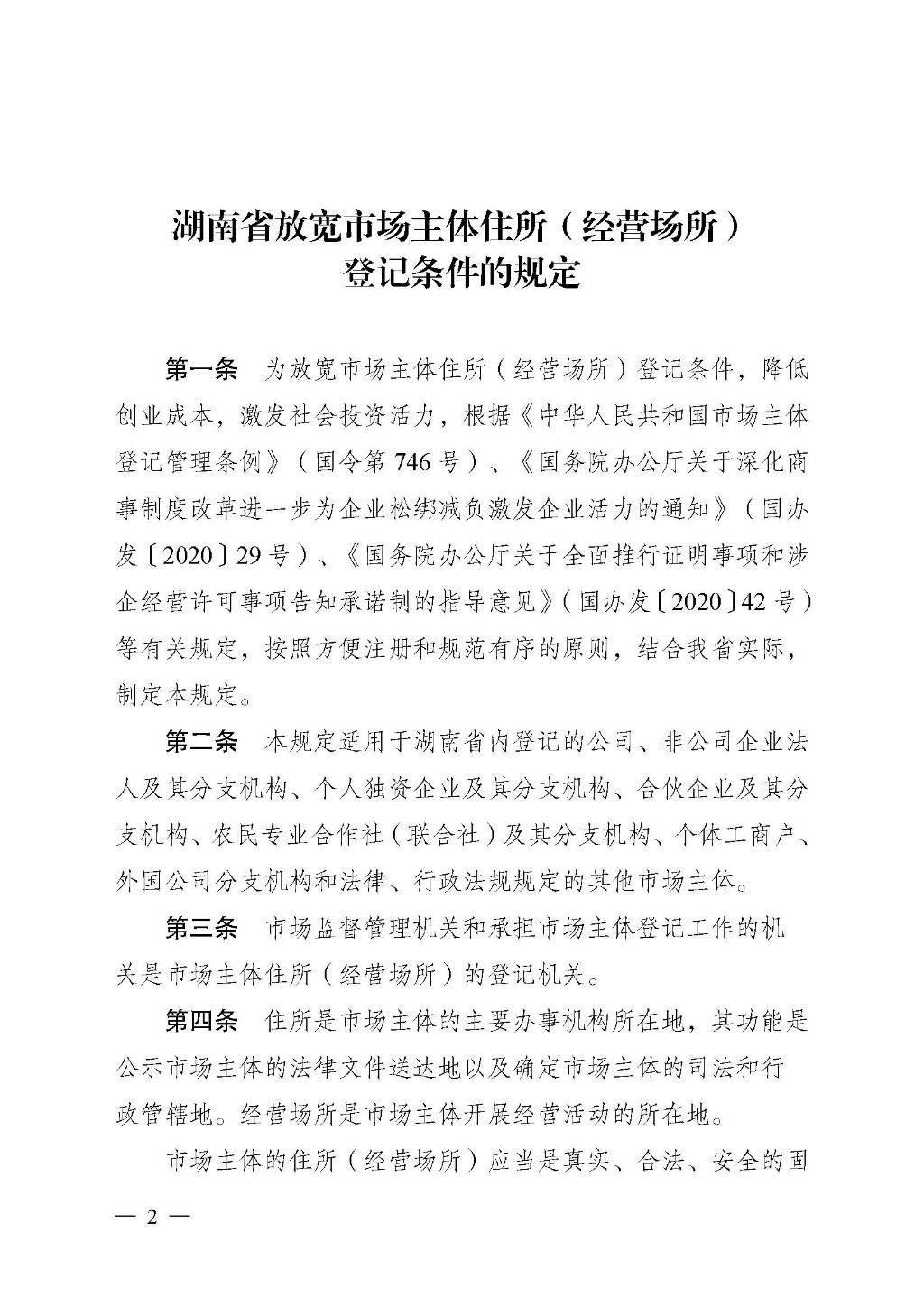 关于印发《湖南省放宽市场主体住所(经营场所)登记条件的规定》的通知