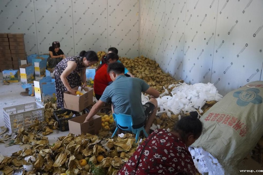(马杜桥乡石门山村高山云雾黄桃基地果农正在打包装运黄桃)